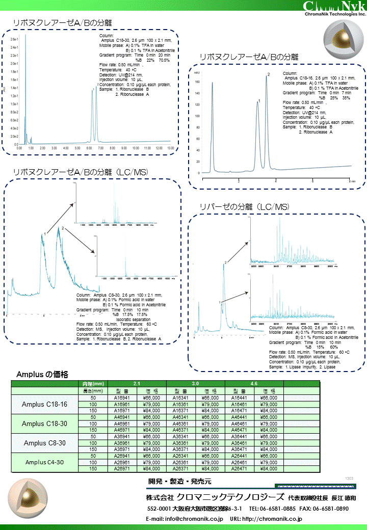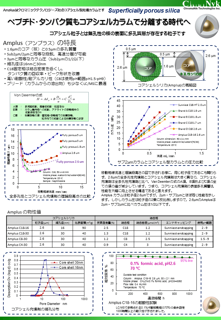 ペプチド・タンパク質分離用コアシェルカラム