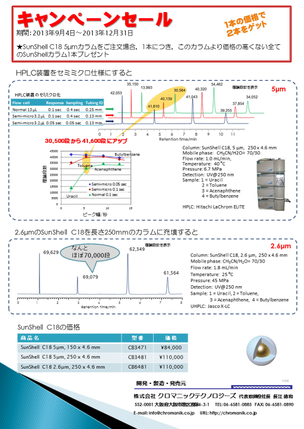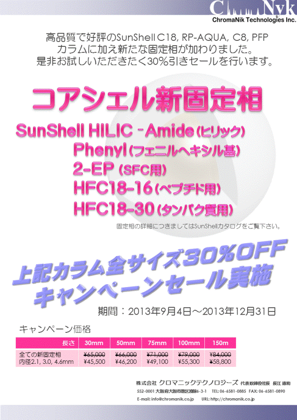 SunShell カラム(コアシェルパーティクル)対象![]() キャンペーン期間:2013年9月4日〜2013年12月31日 |