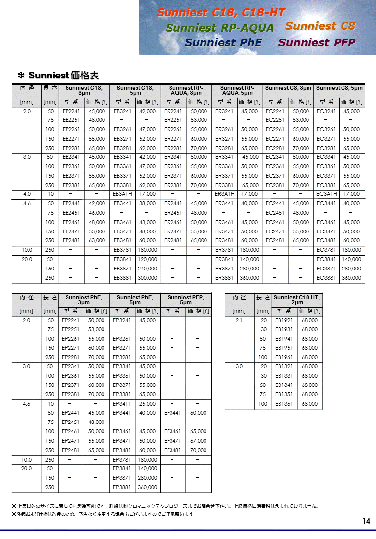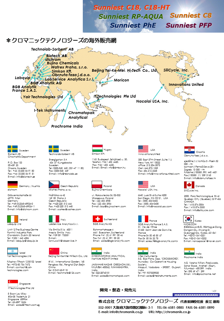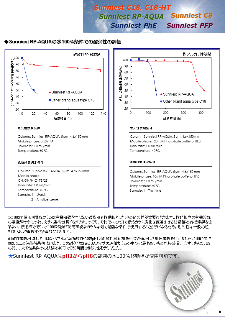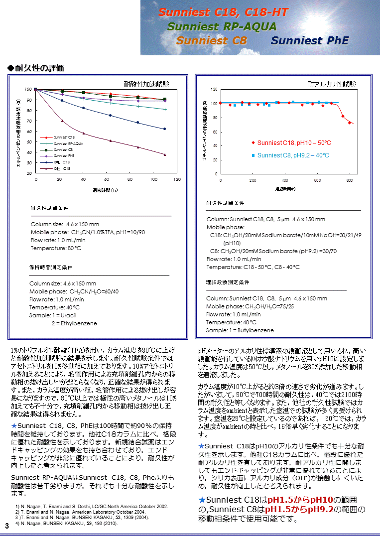 | 50℃、pH10でも使用可能なSunniest C18の耐久性はこちらから |